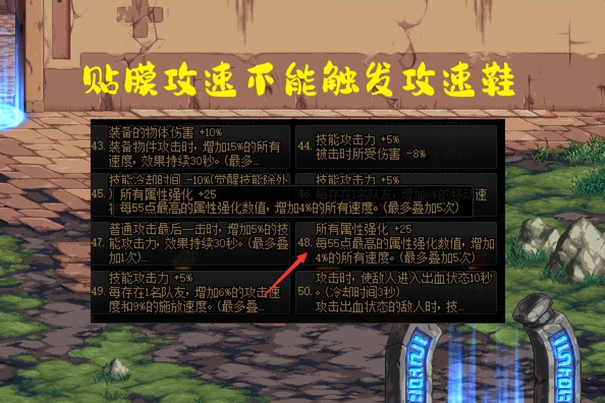 (2)词条库中,有增加“攻速”的词条,但这里的攻速,并不能用来触发攻速鞋!