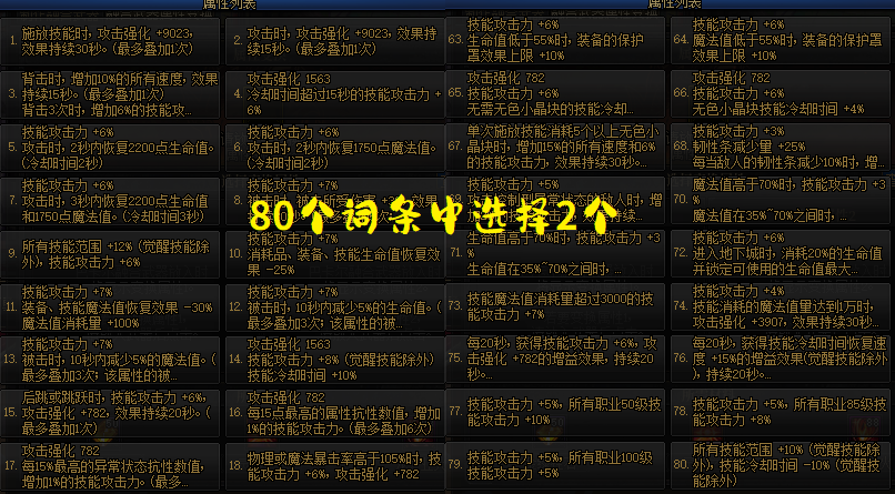 (3)词条选择大多以“技攻”为核心,大家注意几个数字,5技攻、7技攻、8技攻,基本就代表着我们的选择目标了,同时,不能选择2个同样的词条!