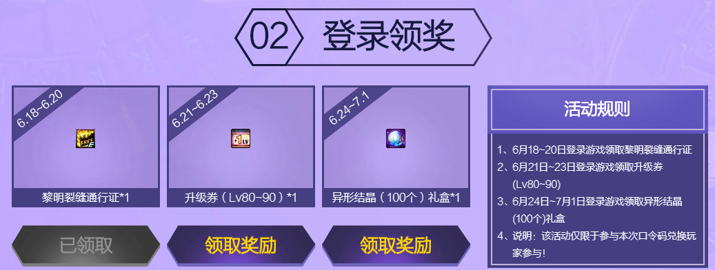 提示:在指定时间内登录即可在本活动页面领取奖励。