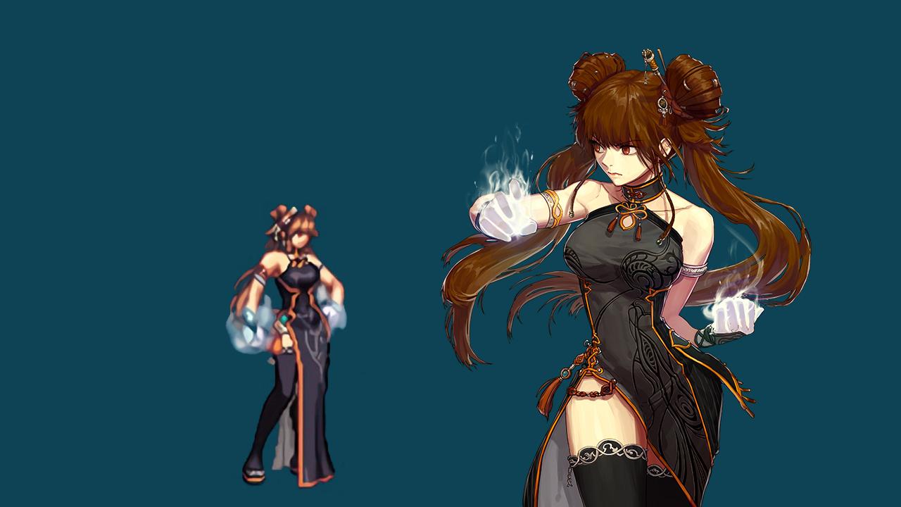 丸子头,黑旗袍,很多玩花花的玩家都钟情她的二觉插画,现在终于可以拥有这一套装扮了,也是个女格斗家中最好看的一套了。
