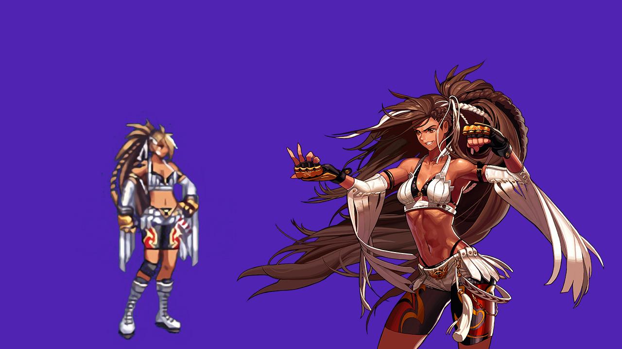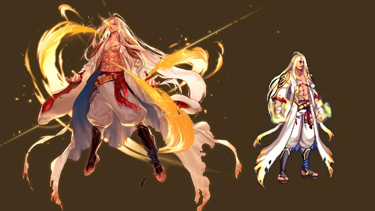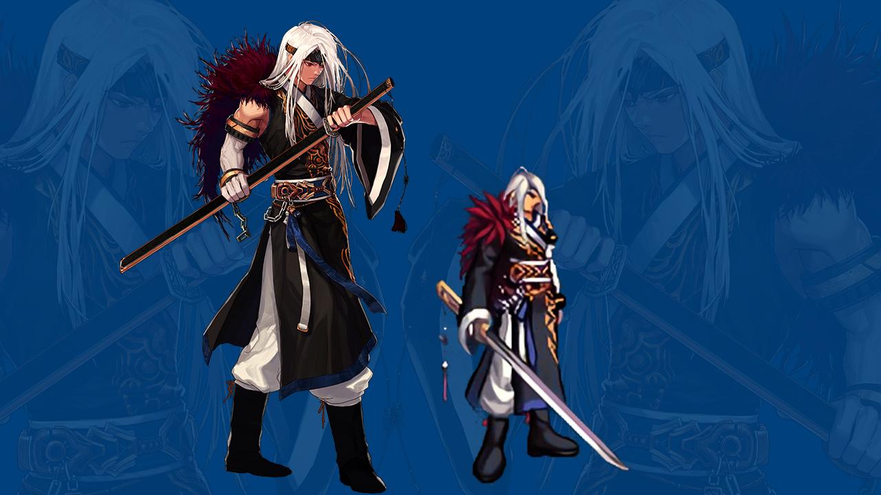 剑神,毕竟游戏里是像素,所以细节还原度不是很好,但是头发部分还是不错,整体效果唯一让我觉得不是很理想的是肩部那个红色的绒毛,感觉太突兀了,其次是人物整体偏胖,没有剑神的那种飘逸赶脚。