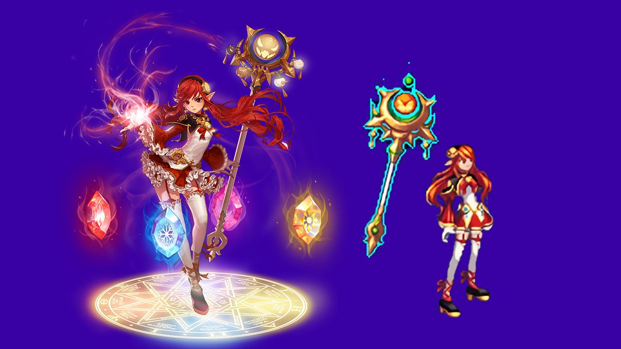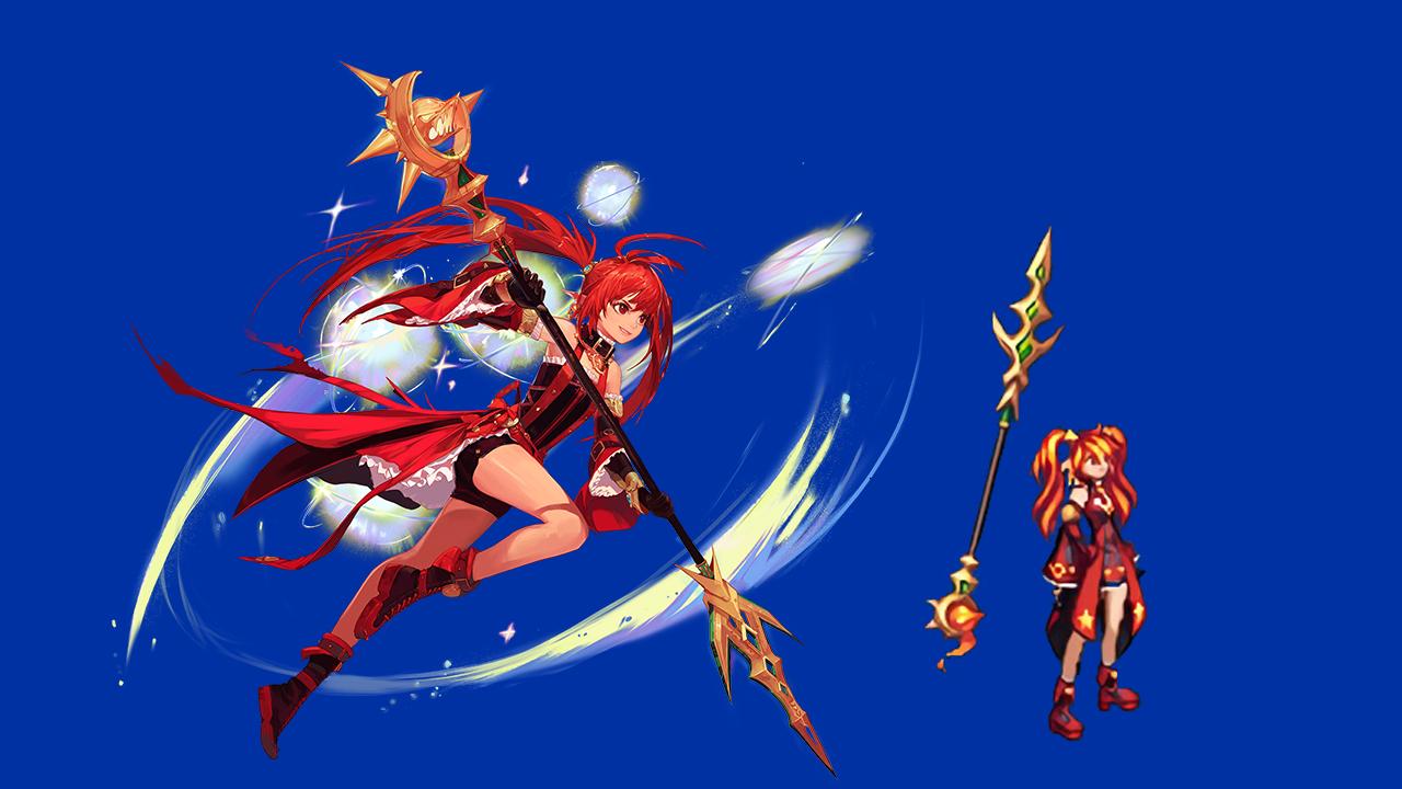 魔皇的还原度也还行,不过因为插画中没有武器,所以不知道这一个武器是不是魔皇的专属外观,但是武器上的四颗宝珠应该对应的是四种属性了。