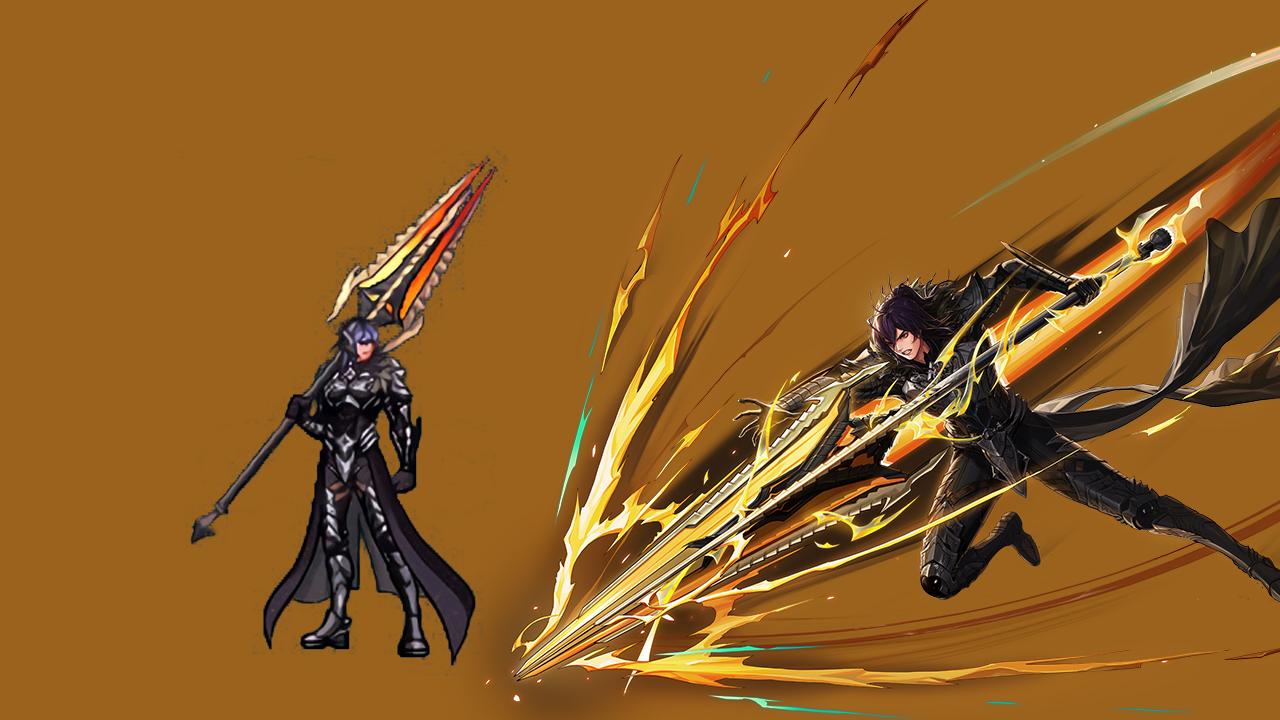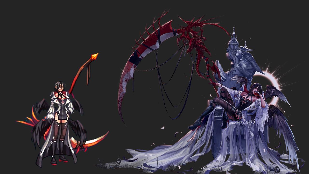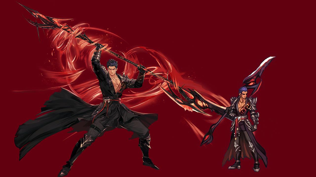 血法的二觉装扮辨识度很高,武器一看就知道是矛的类型,不过披风的设计是一整面,而插画是羽翼叠加的外观。