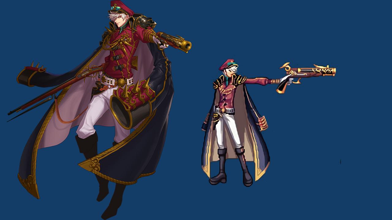 暗枪士的装扮确实还原了二觉插画,不过头上的装饰好像也是新增的,因为插画中没有看到这一个装饰品。