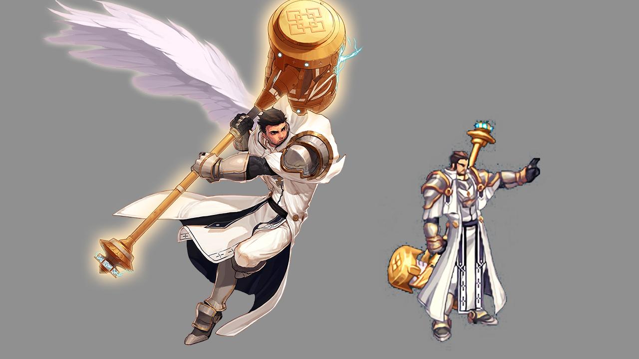 男圣职者中还原度最高的一个,金色的锤子在城镇也能出现,一看就知道是奶爸,辨识度高。