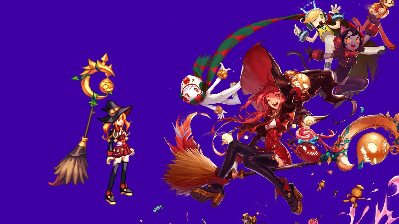 萌道,这一次是真的萌了,要是南瓜帽子再大一些就更好了,武器装扮是二觉插画中坐的扫把,外观一模一样。