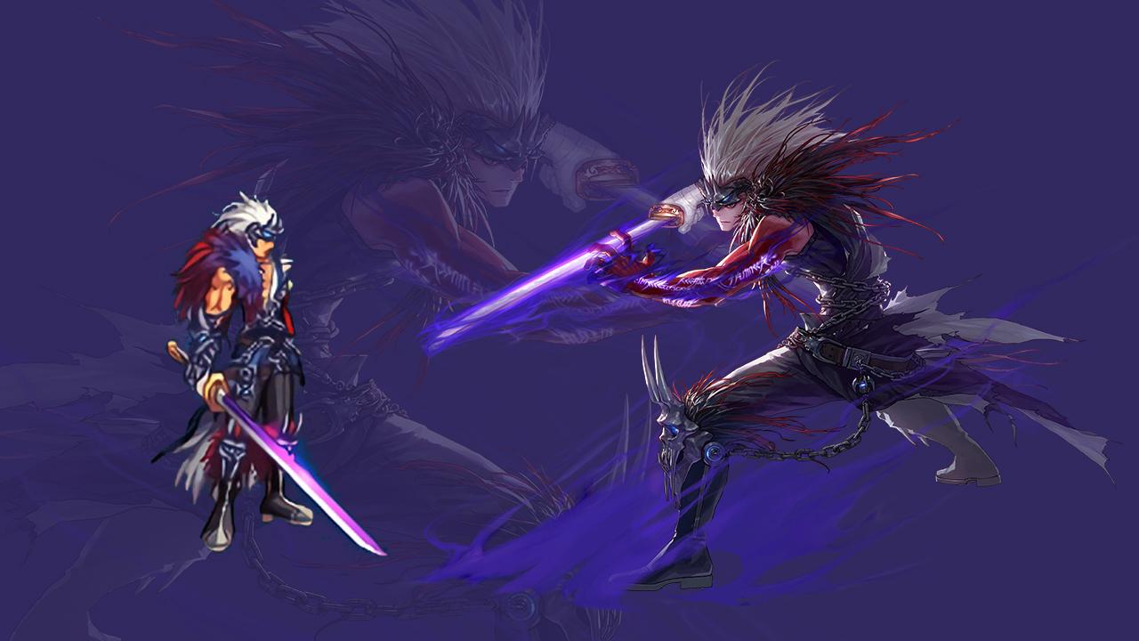 阿修罗,标准的离子烫,头上的光圈充满了职业个性,而且紫色的皮肤辨识度极高,一眼看过去就知道是个盆了,破烂的披风,阿修罗的二觉形象我个人觉得是男鬼剑中最具个性的一个。