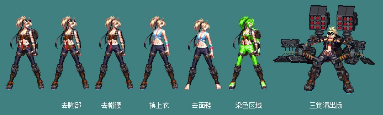 女机械的二觉装扮是还原度最高的一个,我个人觉得也是最好看的一个,充满高科技感的武器装扮,蓝色科技风格的眼镜,可惜我没有玩这一个职业。