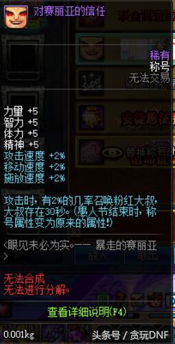 不知道大家可还记得这个坑爹称号,当时300的四维,多少人打了春节宝珠。哈哈,打完了魔刹石就用这个称号。不断小技能打连击。