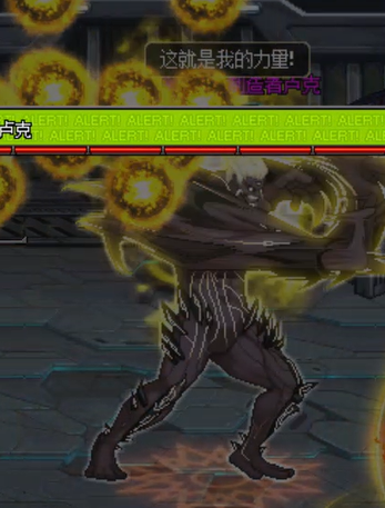 卢克向地面挥手,向前方召唤一排炸弹并逐一引爆,击飞玩家,无视霸体。建议用短位移技能移动至卢克背后进行输出,向上或向下移动躲避炸弹亦可。