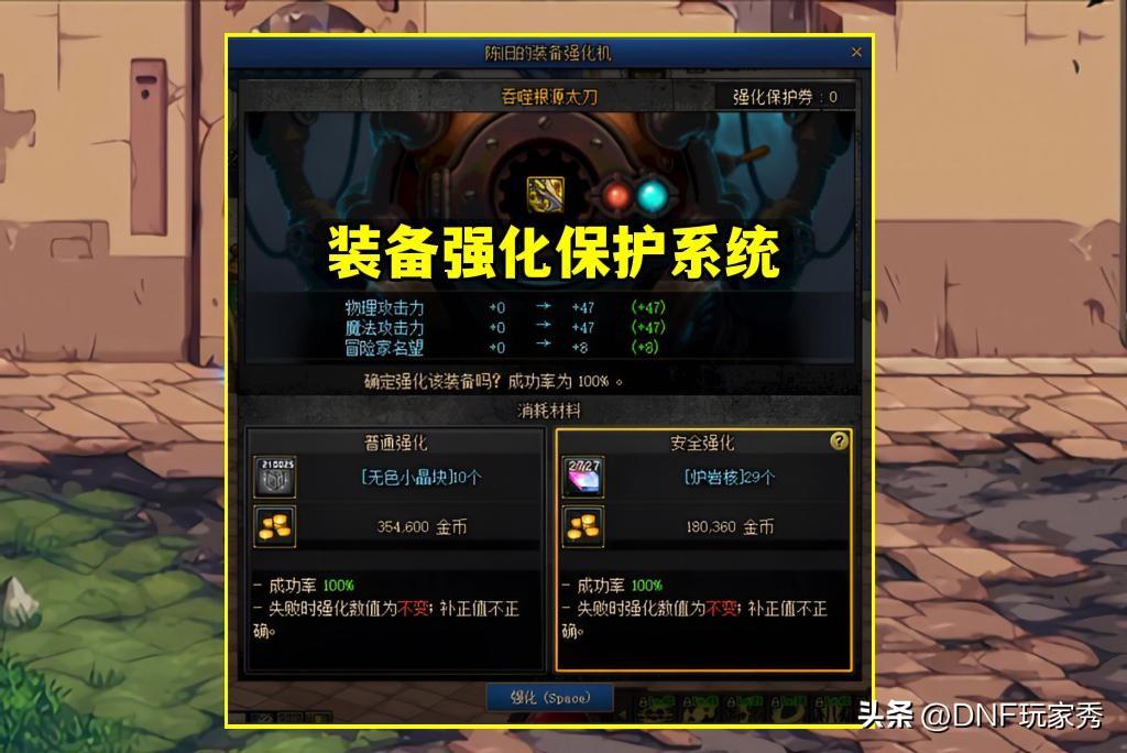 这是110级版本新增的强化系统,在强化1-12的时候,可以选择“强化保护系统”,消耗“金币+炉岩核”,强化失败不会掉级,但很多玩家实测,成功率不高。