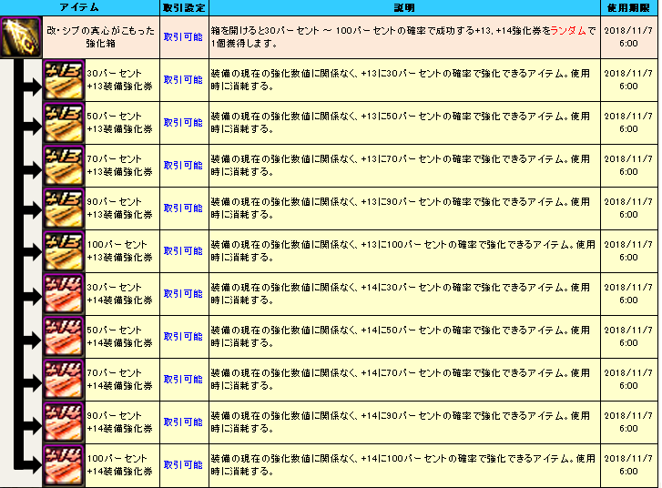 在国服魔盒中,+13强化券是截止目前为止最珍贵的道具了,然而在日服里,+14强化券都加入到了魔盒里,而且还被分成了各种有概率成功的强化券,这种在国服里是属于+12以下强化券的待遇,+14强化券的存在,想想都让人恐惧。