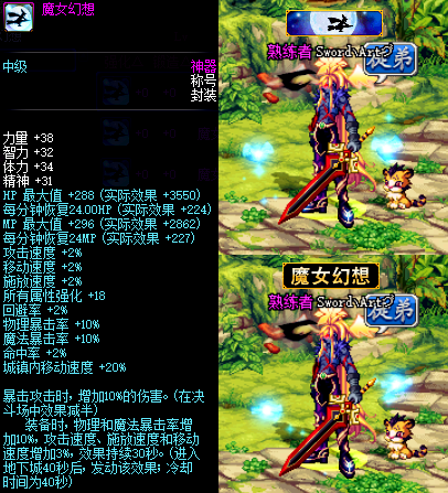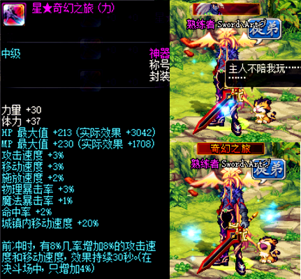 11年的国庆套称号是星奇幻之旅,DNF史上首款神器级别的称号,继天价白虎称号后的又一款PK神器。基础属性三速的加成在当时是非常优秀的了,而且前冲时8%的几率增加8%的三速,只是后来被和谐成决斗场中只有一半效果。