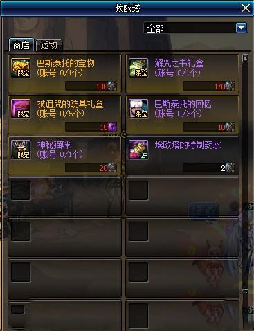 巴斯泰托的宝物,解咒之书礼盒,被诅咒的防具礼盒,巴斯泰托的回忆,神秘猫咪,艾欧塔的特制药水