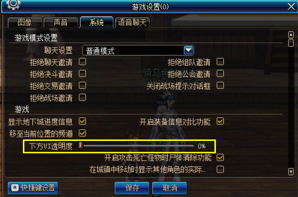 我们再游戏设置中,将下方UI透明度拉低到0%,那么透明程度就和我上面的图片效果一样,所以可以根据自己的需要进行透明度的数值设定。