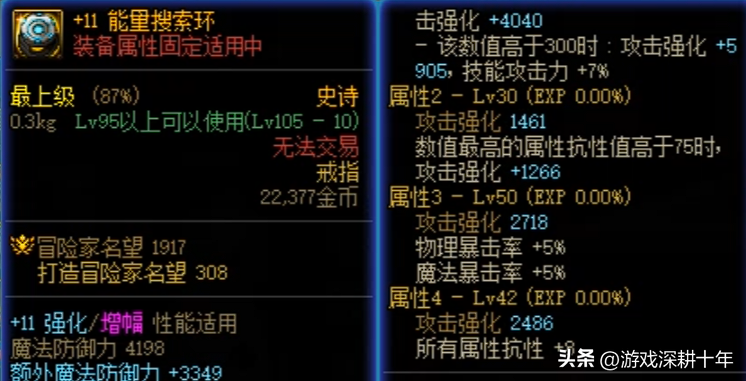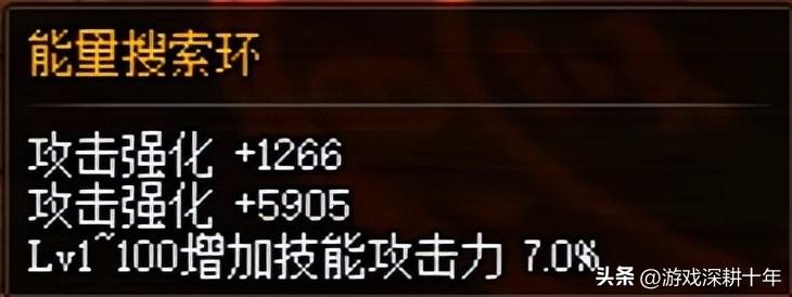能量搜索环的属性是全部触发的,有着7%的技攻