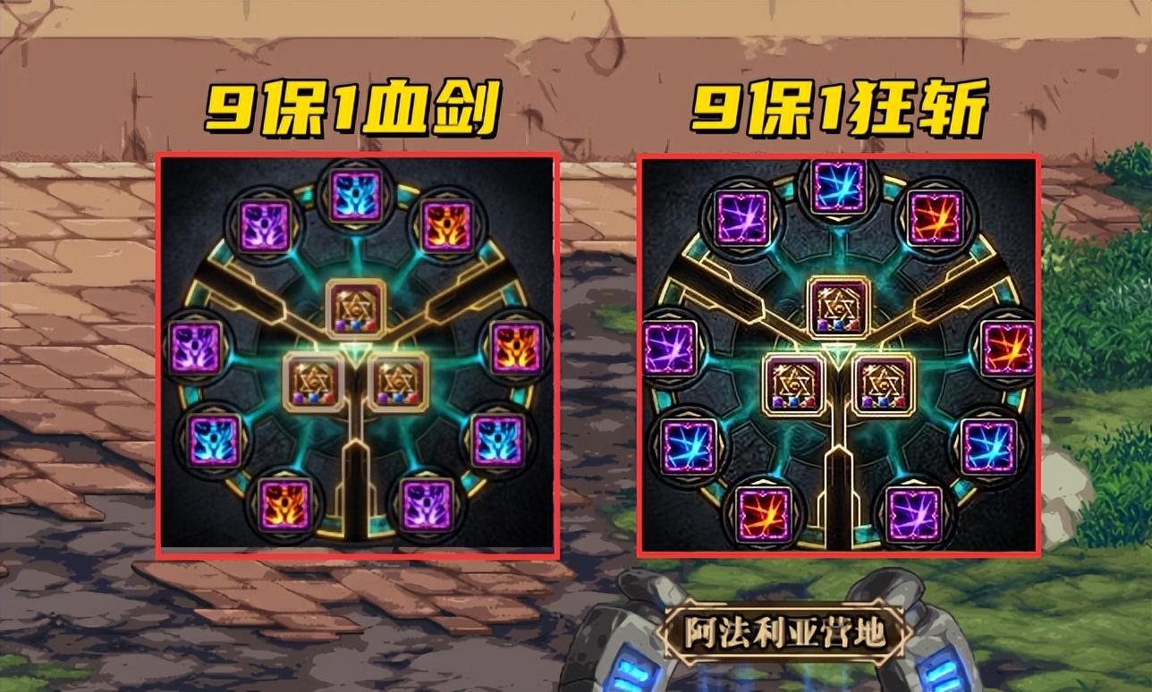 【符文推荐】:9保1“狂斩”,伤害更高;9保1“血剑”,秒伤更高,且不易丢伤害。