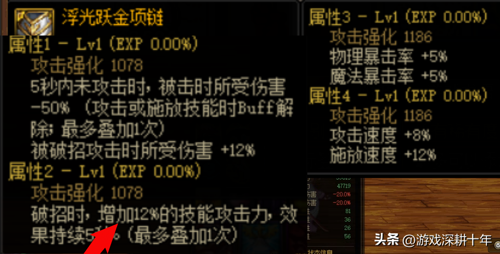 把项链换成 浮光跃金项链,这个项链 破招+12的技能攻击力