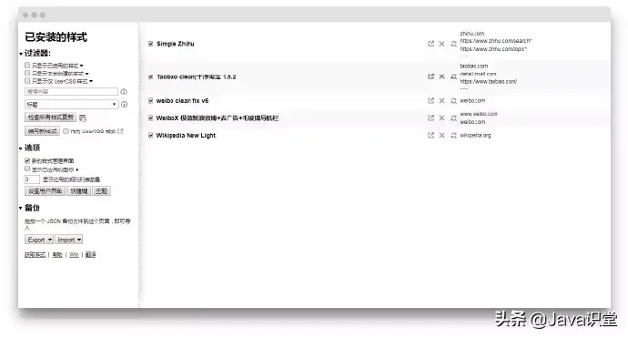 其实类似的扩展还有 Stylish,但它会窃取用户的浏览历史(虽然某位药王说我们更愿意用隐私换便利)。