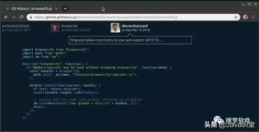 这个扩展可以很炫酷地展示 GitHub 中任意一个文件的历史修改情况。