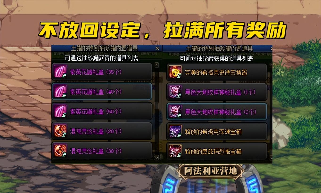 有意思的是,本次开启罐子,采用了“不放回式的设定”,比如说,美罐中总共有19种道具,那么你只需要开启19次,就必定可以拉满所有道具,其中包括了希洛克、奥兹玛装备和材料等,也算变相的保底活动了吧。