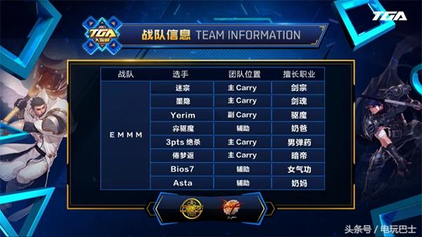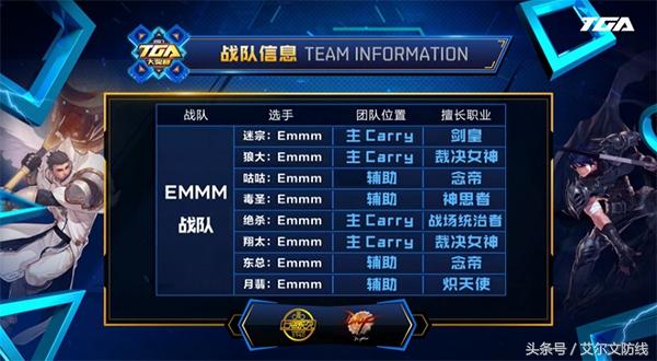 第二个出场的EMMM战队,队伍配置为剑皇和男弹药为主C,裁决女神为副C,辅助职业分别为念帝、奶爸和念帝炽天使。