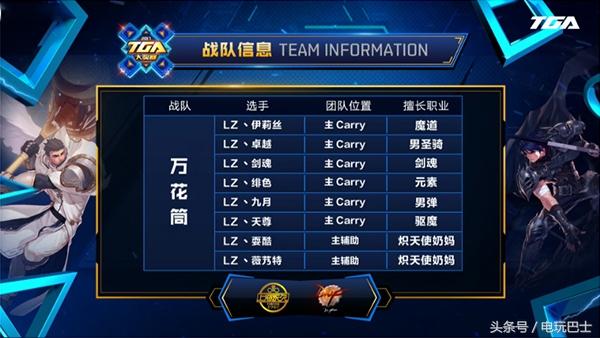 万花筒战队选择的两个辅助职业都是现在版本非常热门的炽天使,其余职业分别为魔道、剑魂、元素、男弹药和驱魔。
