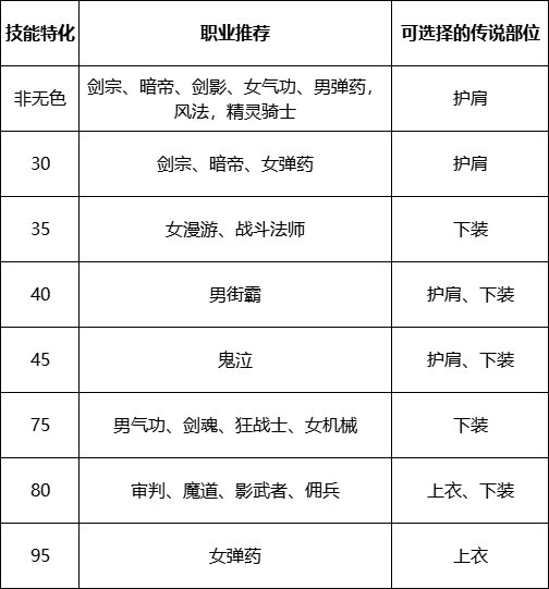 优先推荐的传说部位:上衣、护肩、武器、裤子