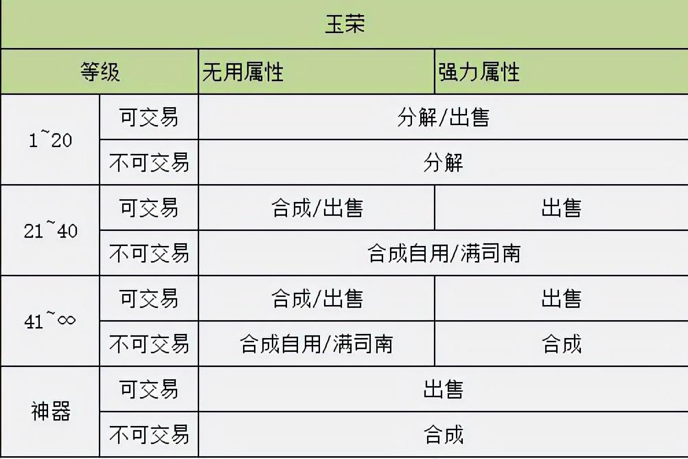 1~20玉荣直接分解,20以上不可交易的留着满怪/合成自用。