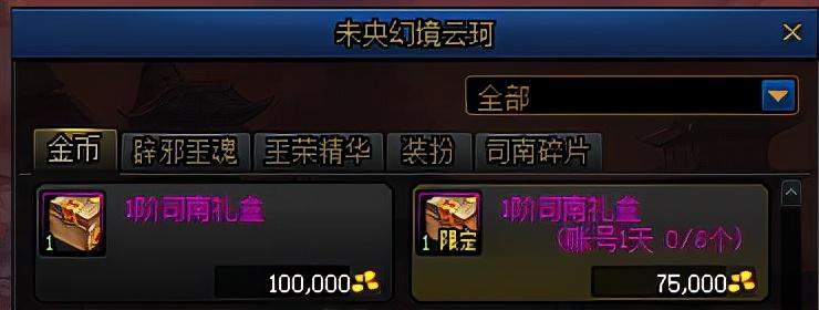 金币出售的每日6个打折司南必买,其余则看玉荣价格。