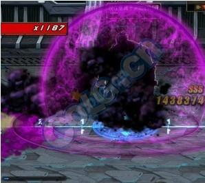 2、暗卢克跳到地图中间,给自己罩上一个紫黑色的保护罩!玩家需要在10秒内击碎防护罩,10秒内未能击碎防护罩则会将地图内所有玩家吊起,扣除30%血量并使所有玩家技能进入CD!
