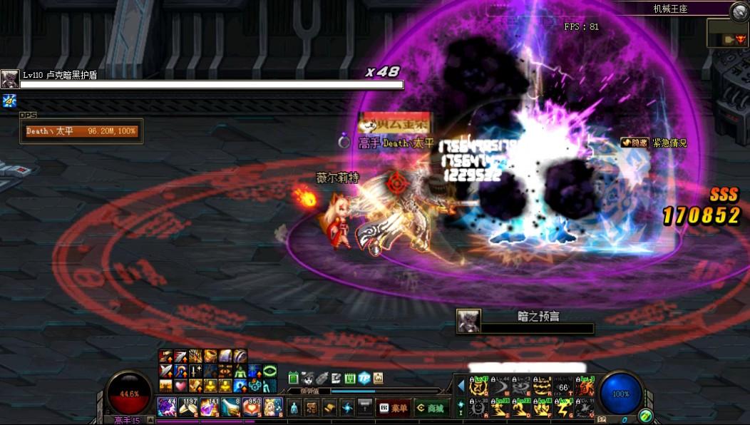 7、暗卢克大喊:你们的力量将会成为我的力量!随后暗卢克进入读条,受到攻击时身上会出现白色的护盾!每次攻击暗卢克都会召唤一个紫黑色小球,一段时间后小球落地造成爆炸伤害!