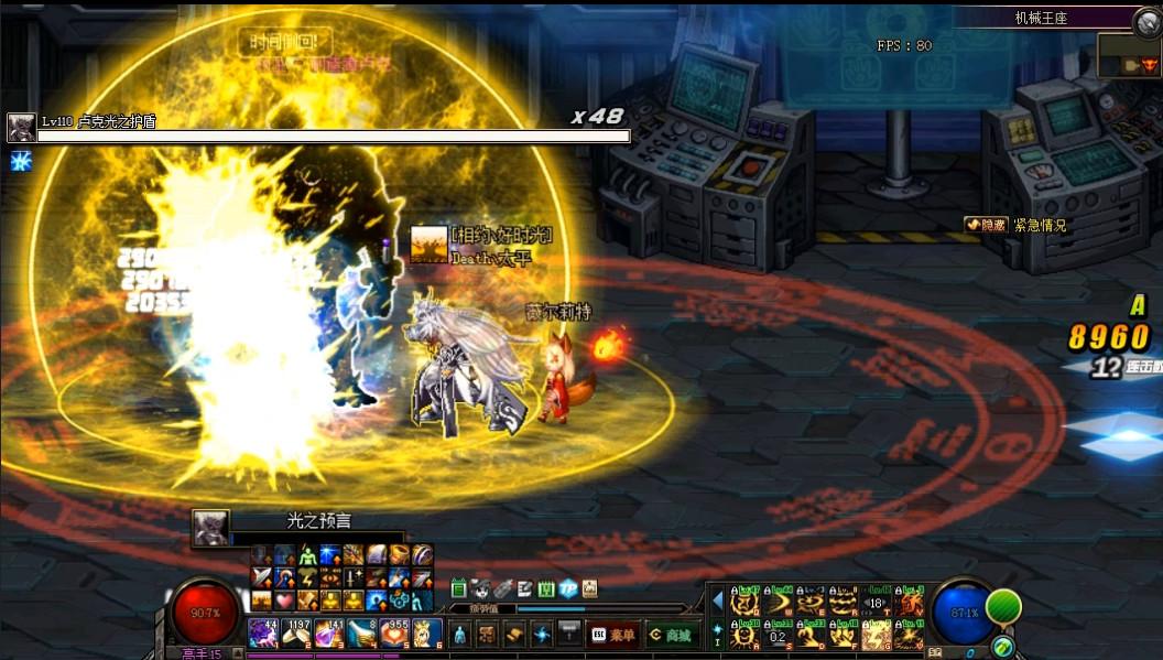 9、光卢克大喊:吵死了!随后给地图内离光卢克最远的玩家罩上金黄色罩子,在被罩玩家头上会出现技能快捷栏内的部分技能,若施放头顶的技能,被罩住的玩家会被秒杀,并将罩子传给靠近他的另一名玩家!