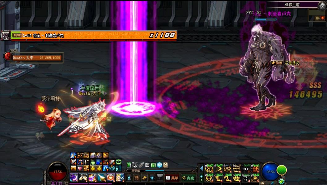 5、暗卢克召唤出一道紫色的光柱,并标记地图内的玩家进行追踪攻击!在紫色光柱移动路径上会留下紫色液体状物体,玩家经过液体时会遭受伤害!