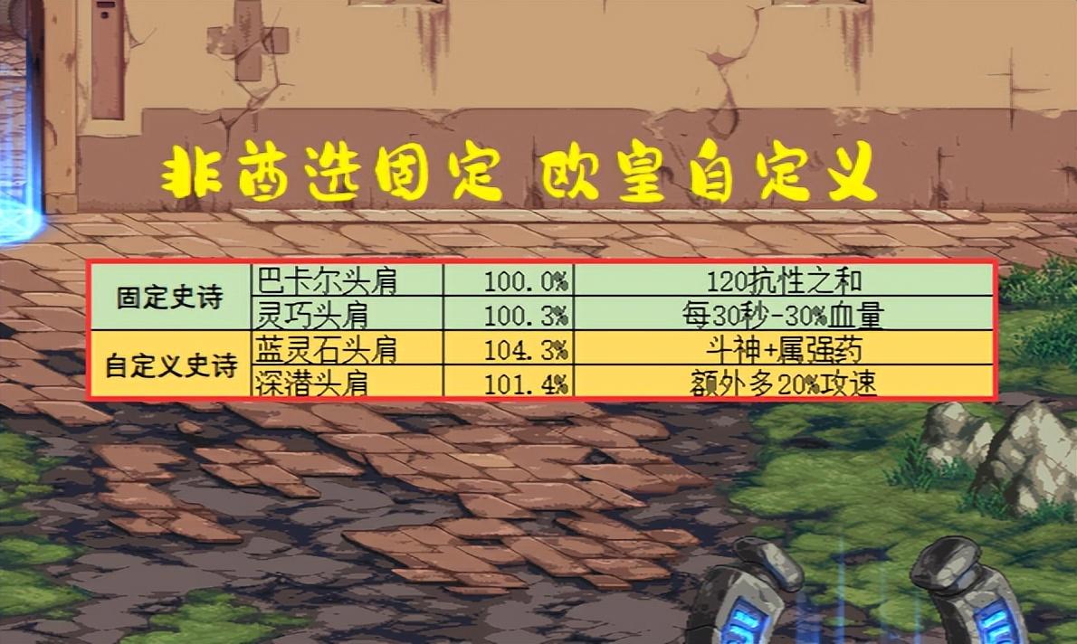 综上所述,在神界版本,可结合流派获得如下极品护肩。