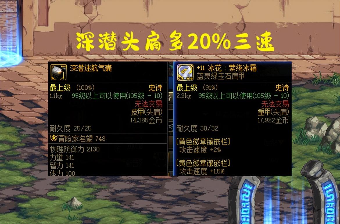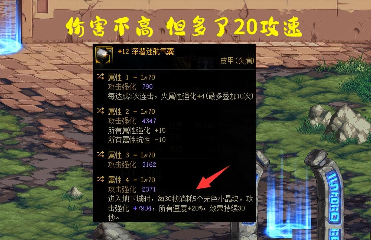 【3、全流派深潜护肩】:攻速20%、单属强40、罩子6技攻、全属强20。