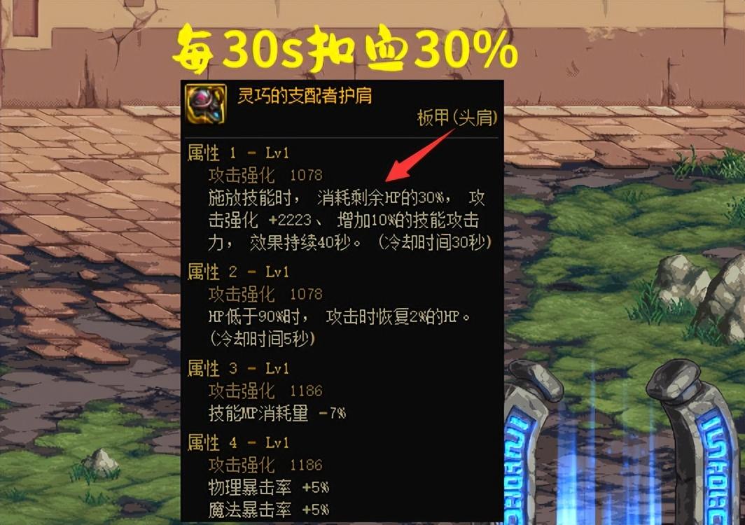 不过有所不同的是,灵巧头肩存在“负面效果”,每30秒会消耗30%血量 ,而星光腰带需要保持50%以上血量才能触发冷却和技攻,所以严格来说,“攻速出血流”并不推荐灵巧头肩,更适合低血流搭配。