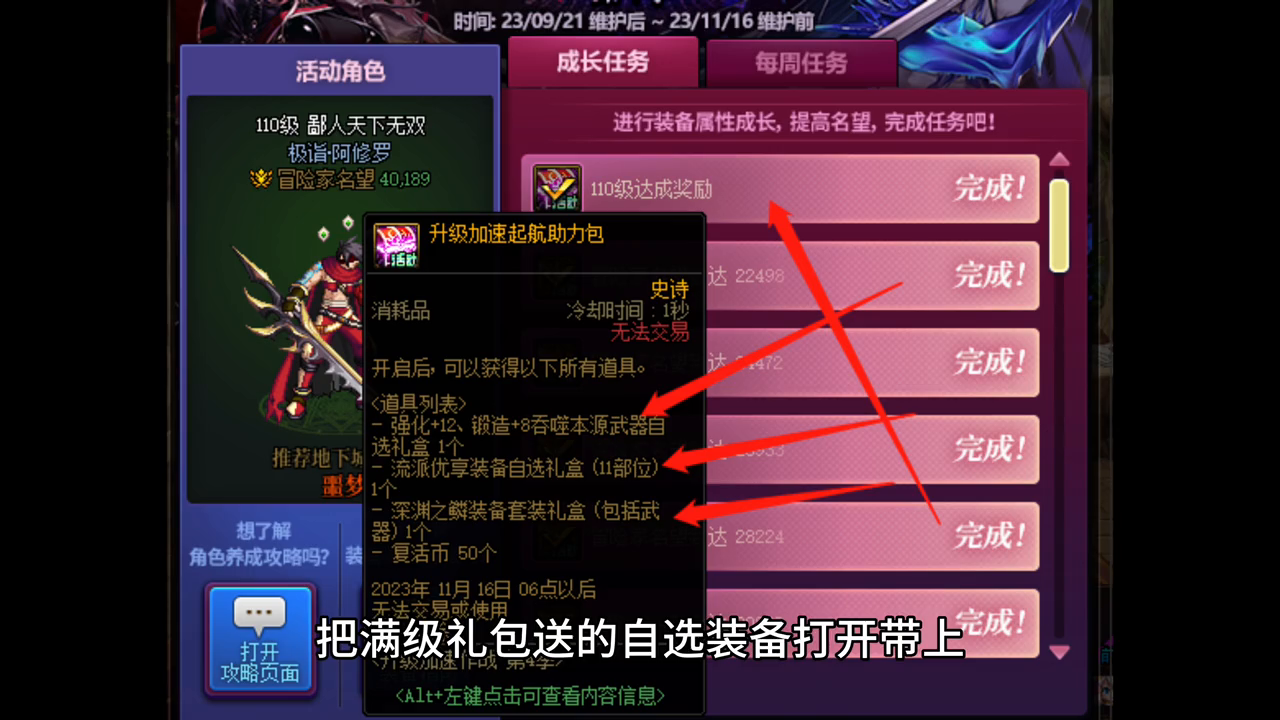·打开满级礼包,领取自选装备,这些装备都有附魔和徽章。