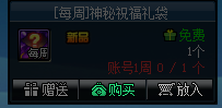 商城-活动-每周-神秘祝福礼袋(10pl):每周可免费开一次,有几率获取10pl。