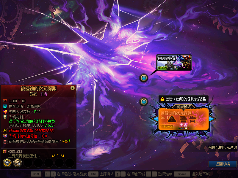 2、单纯从收益上来看,这里可以获得大量的史诗,分解的无色很多,灵魂之源自用还可以日售40个;同时“被侵蚀的次元深渊”经常能出65-70级词条的装备,对大号来说也是不小的提升