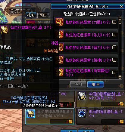 华丽的徽章自选礼盒,就不推荐勇士们去兑换了!属性没有灿烂的好,兑换了也是坑。。