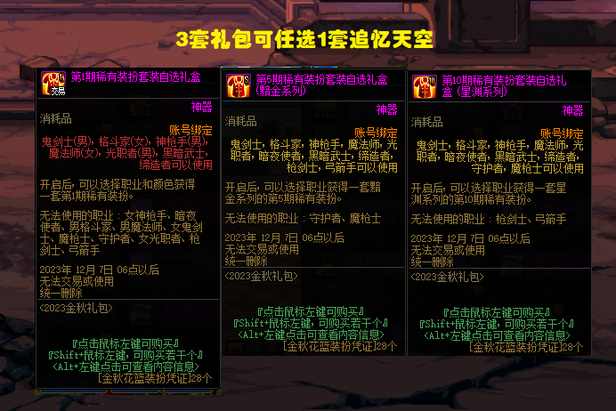 dnf国庆追忆礼盒2015 DNF:国庆套多买多送详解!3套换追忆天空,4套换12强化券
