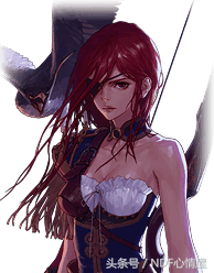 个性的眼罩,凌乱却飘逸的一系红褐色长发,凌厉的眼神,白色的抹胸,性感中衬托着成熟。