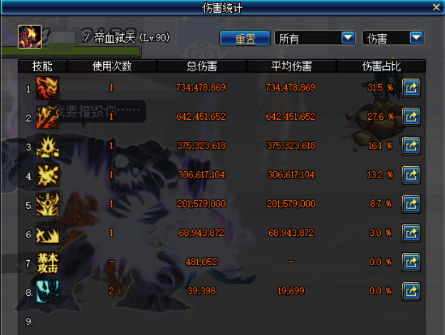 我们去修练场打弗曼105级,我们再看几个输出技能的伤害: