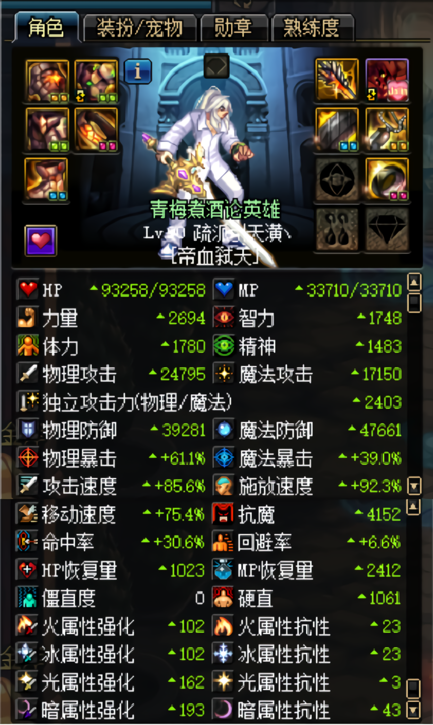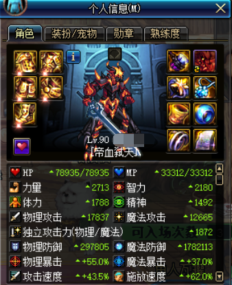 红眼白板装备,万世套加恍惚套加三神器,面板属性为:
