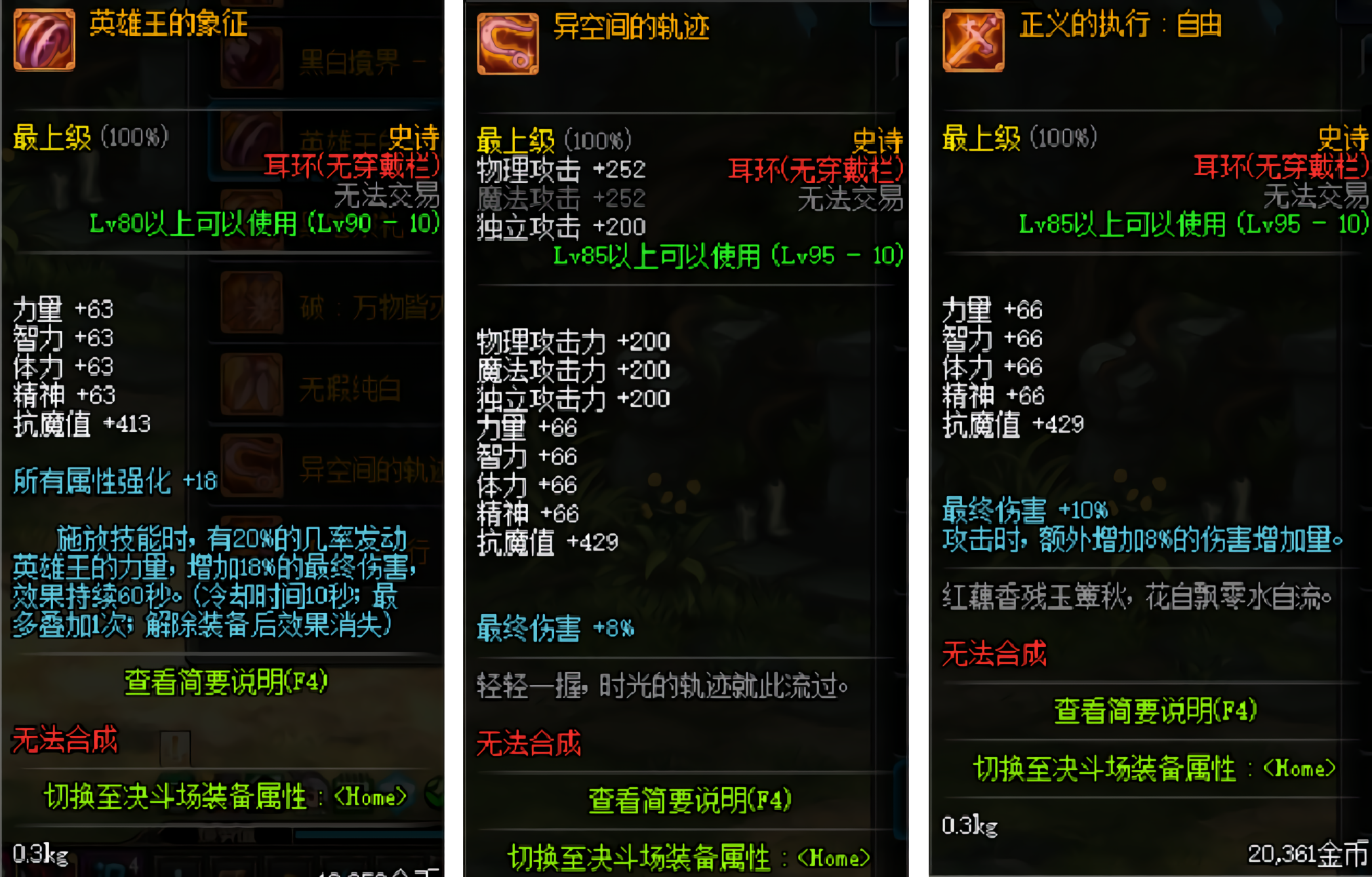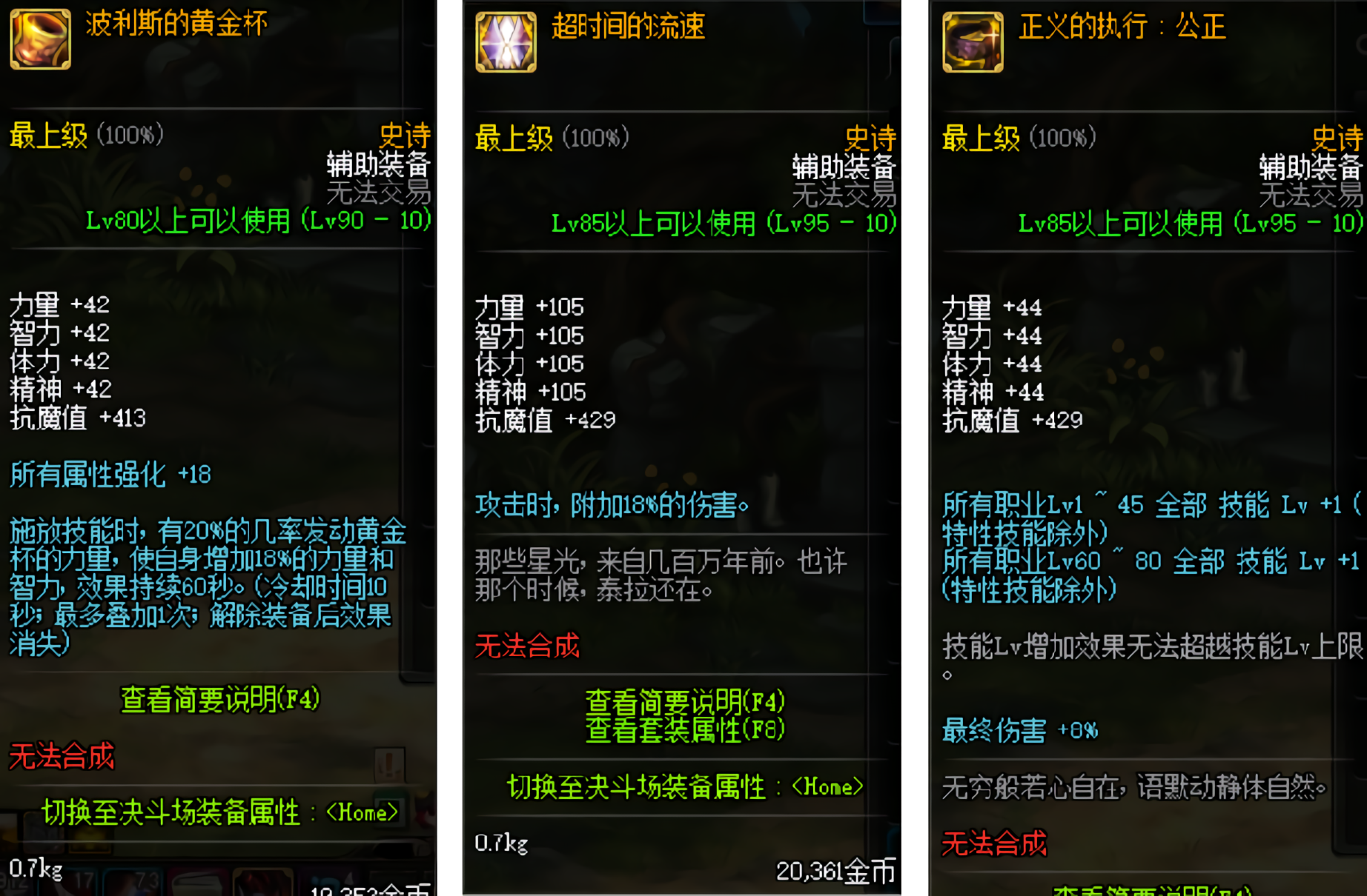 DNF:三神器和95版本特殊装备提升量对比,单件属性三神器最强!