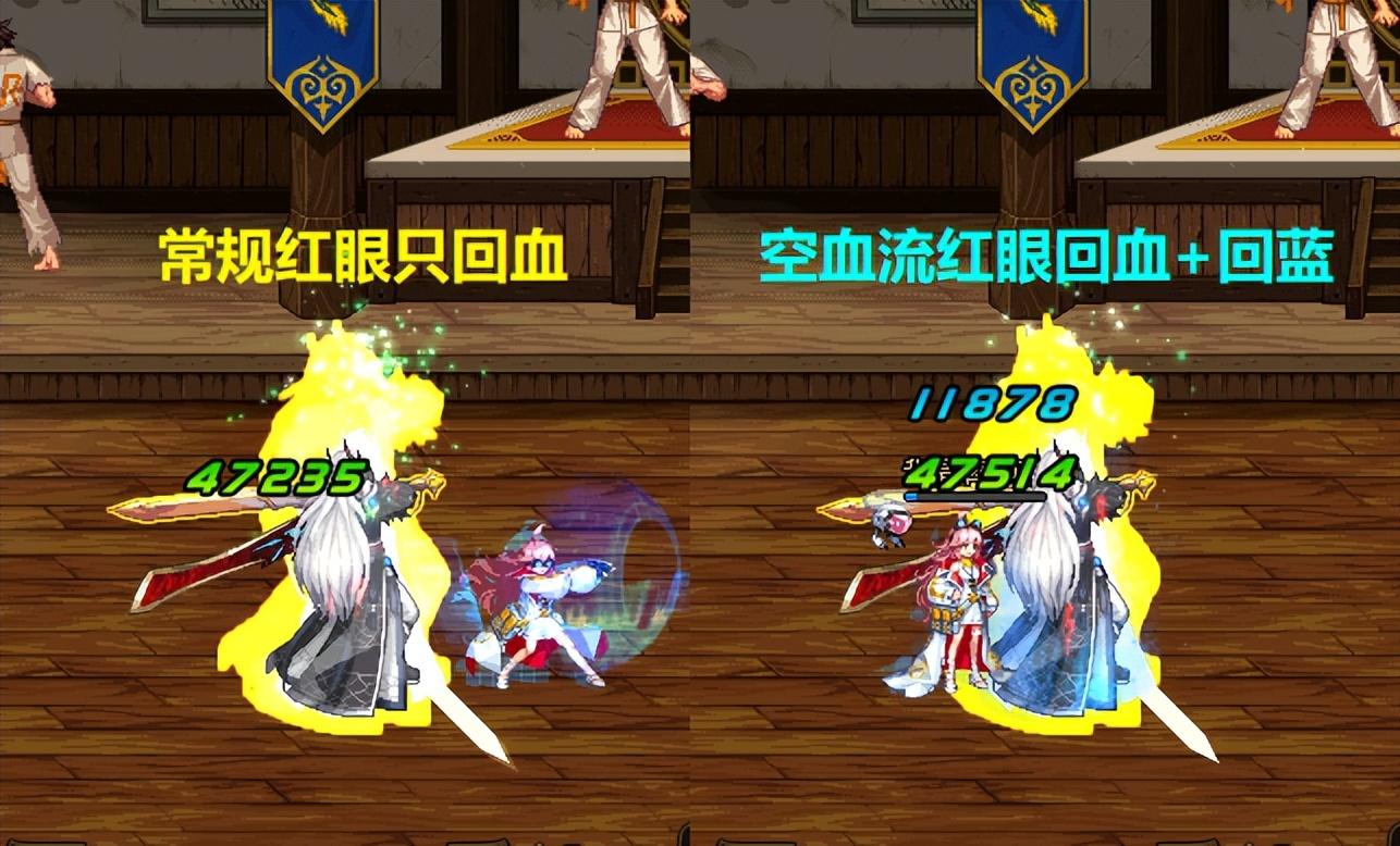 以我这里的红眼为例,如果不走空血流,一个死亡抗拒可以回血4.7万;而如果走空血流,一个死亡抗拒可以回血4.7万+1.2万蓝量!