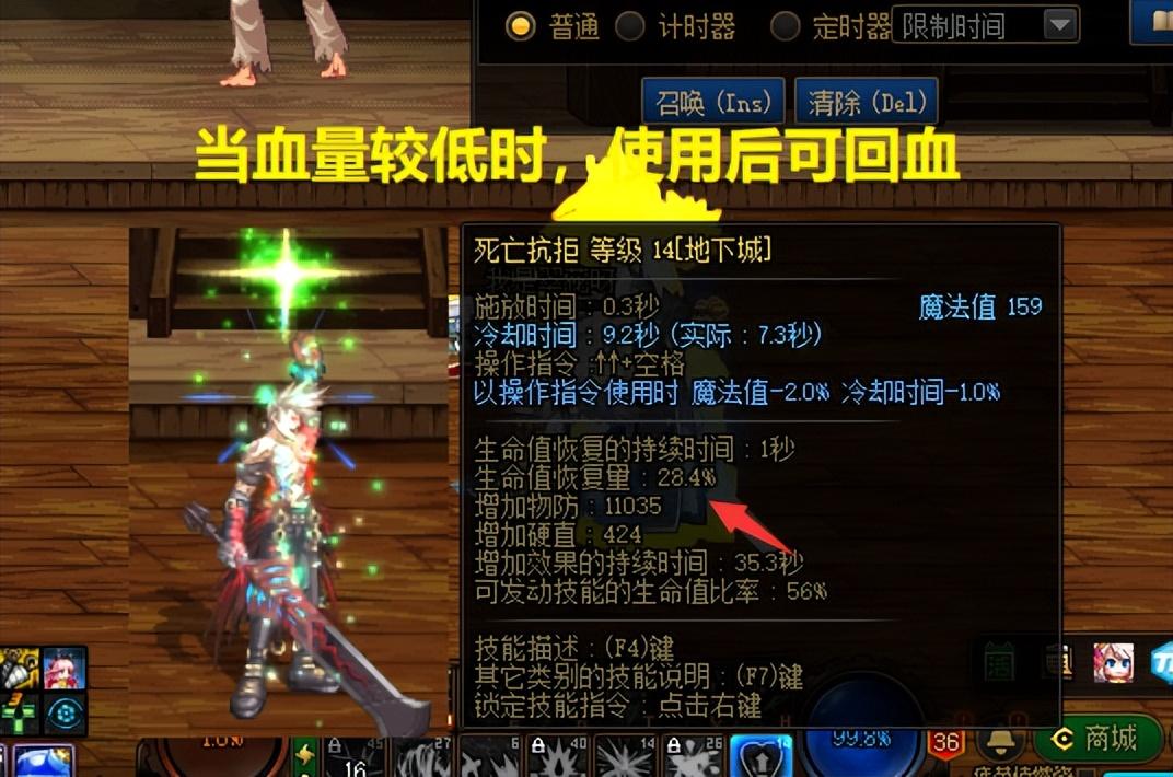 但比较有意思的是,“空血流红眼”依旧可以使用该技能,并且会把其中一部分血量转换为蓝量,同时因为空血流红眼只有1%血量,意味着只要死亡抗拒CD转好,就可以立马使用!