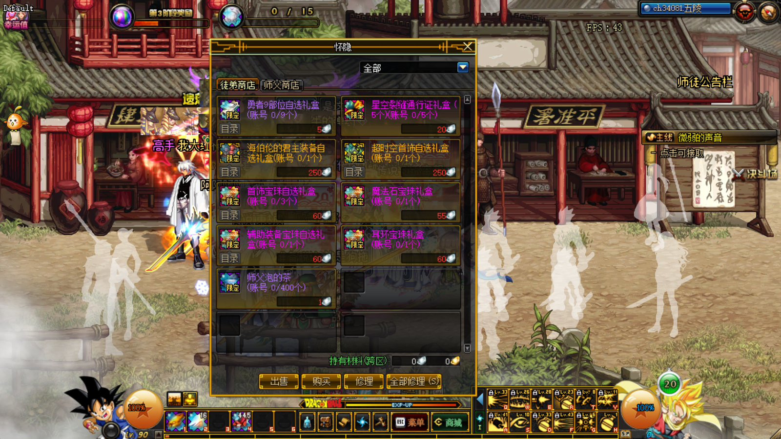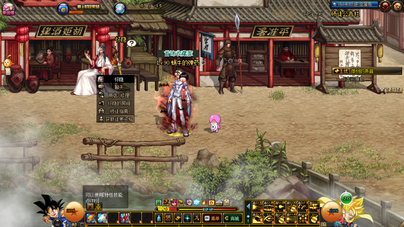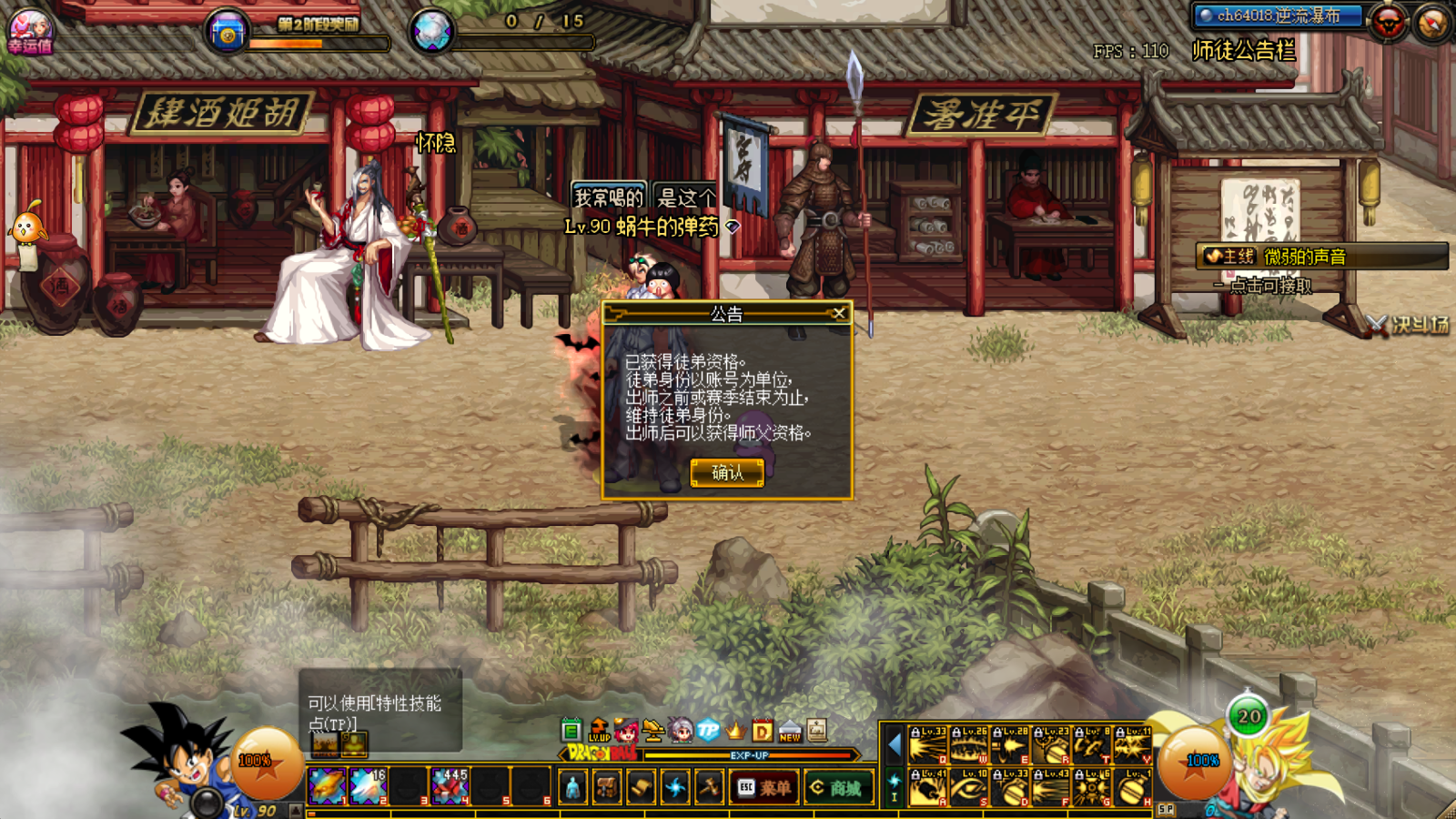 在获取徒弟资格后,我们要去点击公告栏,这里需要提醒大家,必须在五陵频道点击才会有反应,其他频道是点击不了的哦!