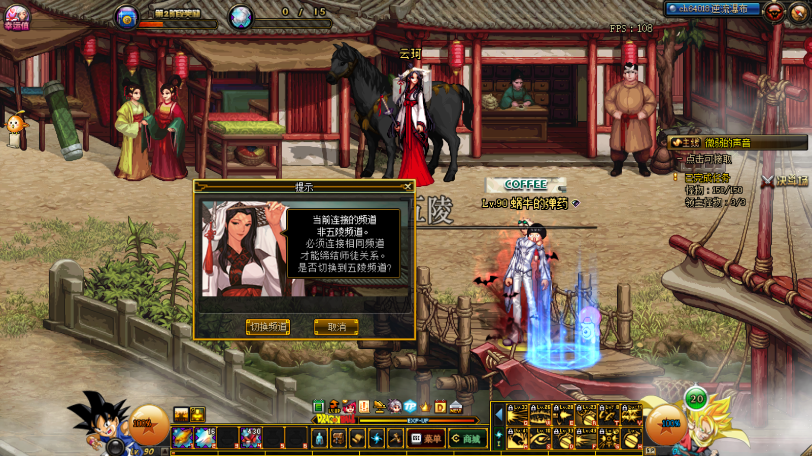 传送到五陵地区会询问是否选择专门的频道,建议大家选择专用频道,因为如果不是同一个频道是无法拜师的哦!